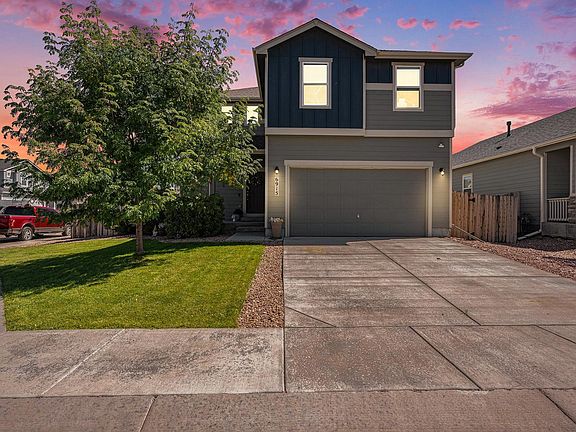 Welcome to Lorson Ranch! Great access to Fort Carson, Schriever and Peterson AFB's ~This better than new two-story offers an open main level concept, HUGE kitchen island w seating, pantry, lots of storage! This main level is a true entertainers dream! Convenient slider off kitchen provides easy patio access for summer BBQ's. ~Go upstairs to the Luxurious master suite w double vanity, shower with bench seat, 10X8 walk-in closet ~Relax in the spacious loft ~2 secondary bedrooms w full bathroom ~Desirable upper-level laundry with drain ~Large corner lot, fenced back yard, sprinkler system, 10x12 concrete patio. This newer home has everything done! Beautiful landscaping, fencing, window coverings, and all kitchen appliances!