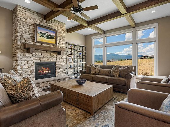 Incredibly private yard backing to acres of open space with multiple outdoor living areas, a meticulously maintained landscape, and a spacious, well-cared-for interior. Located on a newer, low-traffic street near parks and a neighborhood restaurant. A substantial post-and-beam covered porch opens to an inviting entry that draws you through the main living space and out oversized windows framing open views. The main floor great room features a gas fireplace, coffered wood beam ceilings, and upgraded flooring, and flows into the designer kitchen and dining area with access to a covered deck. The main floor also offers an elegant primary suite with a spa-like bath and walk-in closet, plus a second bedroom (or den) with adjacent full bath. The daylight walkout lower level includes a large family room with wet bar and fireplace, two spacious bedrooms, a full bath, and extra storage. Main floor laundry/mudroom connects to a finished, oversized 3-car garage.