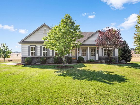 This John Runyan custom-built 5 bed, 3 bath home sits on 10 private acres and offers the perfect blend of comfort, function, and acreage living. The gourmet kitchen features a built-in gas range, double ovens, and expansive windows that flood the home with natural light. Fresh paint, new carpet, and a fully renovated primary suite highlight the main floor, complete with a large bedroom, sitting area, and spa-inspired bath with a garden tub overlooking the property. The lower level is designed for versatility—ideal for multigenerational living or entertaining—with 9’ ceilings, a wine/panic room, 2 bedrooms, a full bath, and hookups for a kitchen or wet bar alongside plumbing for a gas fireplace. Step outside to mature landscaping, colorful flower beds, and a tranquil water feature that frames the back patio and deck. A 30x40 shop with reinforced concrete floors provides room for projects, storage, or toys. Located in Mead or 9 Mile School Districts.