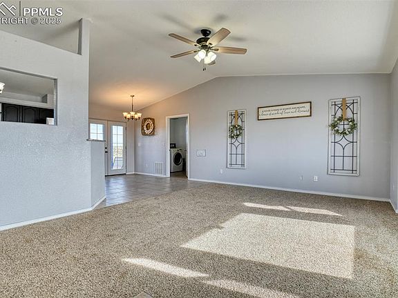 Discover this Gem! Just off Highway I- 25 between Colorado Springs and Pueblo, this 4-level house cannot be missed. It sits on 8.2 acres of land, fenced and zoned RR-5 for horses and other animals. Surrounded by open space, the property offers breathtaking views of the Mountain Range and Pikes Peak. Upon entering the residence, you will notice the remotely operated gate and a concrete driveway leading to the 5-car attached garage; two tandems and one spot for a compact car. The house features 4 bedrooms, 3 full bathrooms and an unfinished basement with a total of 3,117 square feet. Open concept layout on the main level has a kitchen with a breakfast bar, stainless steel appliances and granite countertops which then flows into the dining area and living room. From the dining room step outside to the covered patio and a wood deck and enjoy the views while relaxing in this idyllic setting. The laundry room is spacious and located on the main level with included washer & dryer. There are 2 bedrooms upstairs and 2 bedrooms located on the lower level. The Primary bedroom is generously sized with two walk-in closets, a 5-piece master bathroom with double vanity, a separate shower and a bathtub. The other bedroom upstairs is extended with a connected space, which can be treated as a 5th bedroom but unconforming. Lower level of the house is made for entertainment; it features a family room with an electric fireplace, two ample bedrooms, a full bathroom and below that unfinished basement with a gym mat for exercise enthusiasts. No HOA fee on this property! Incredible improvements done by the owners include Radon Mitigation System, Water Softener, Newer AC/furnace combo, Freshly painted interior; EV charger in the garage;Paid OFF Solar Panels to save on your energy bill. The house is Move-in Ready! Indulge yourself by owning a slice of what Colorado has to offer not too far away from the city with modern living interiors and convenient upgrades. Definitely worth a closer look!