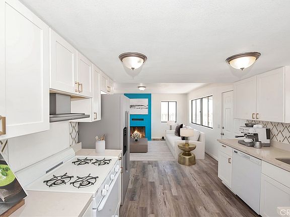 Step inside to discover the heart of the home—a modern kitchen adorned with new quartz countertops, shaker cabinets that are perfectly complemented by stylish gold finishes. Enjoy cooking in the updated kitchen with brand-new appliances. The open living space features new laminate flooring and a cozy fireplace, creating a warm and inviting ambiance for relaxation.