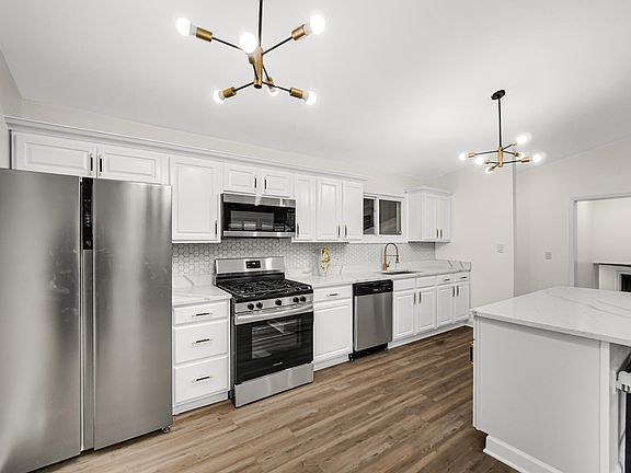 This spacious five-bedroom, two-bath home has been fully updated and is ready to impress. The brand-new kitchen features granite countertops, stainless steel appliances, and an open floor plan with an eat-in island. A brand-new roof and updated mechanicals, including a new furnace, water heater, and AC (to be installed before closing), ensure peace of mind. Luxury vinyl flooring runs throughout, with brand-new carpet in the bedrooms. Both bathrooms have been stylishly updated. Enjoy summer months on the wraparound deck, accessible from both large upstairs bedrooms. The primary suite offers ample storage with multiple walk-in closets and his-and-hers spaces. Conveniently located just minutes from the beach, parks, and trails--don't miss out on this move-in-ready home!
