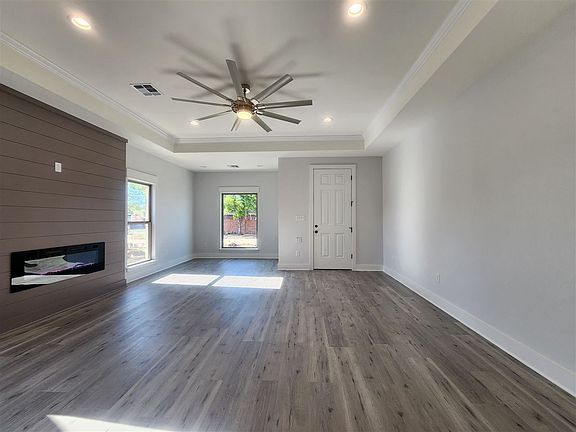 Great West Side location! This newly constructed patio home in Silver Creek Addition entails everything buyers love about the Success Construction building style. The entry with the ten-foot ceiling guides you to the spacious open floor plan. The 'floating" fireplace provides a stylish and modern focal point on the back wall where it can be enjoyed anywhere ln the spacious living space. The dining area features features a higher central arch that draws attention upward outward to the covered patio. An oversized kitchen island with breakfast bar offers ample prep and serving counter space. Our standard offering with this home gives you a gas range/oven with an oversized hooded vent that's vented to the exterior. A top tier stainless steel appliance package includes a built in microwave oven, smart fridge, and dishwasher. Granite countertops and subway tile back splash add a sleek and elegant design element to the overall ambience of this home. Custom cabinets feature in cabinet lighting and the walk-in pantry provides additional storage space for foodstuffs and small kitchen appliances. The master suite is to die for with ample sized walk-in closets. The ensuite bath offers a spa like space with the free-standing tub and walk in shower Secondary bedrooms are user friendly w/ceiling whisper soft ceiling fans and window coverings. Fenced yard. Approx 2320 Sq ft of attainable luxury. 2-car garage w/remote. Inground sprinkler system. HOA Dues are $480.00 per year. For more or your personal tour, please call Market-one Real Estate Firm (580)536-2700 Hank (580) 284-9787.