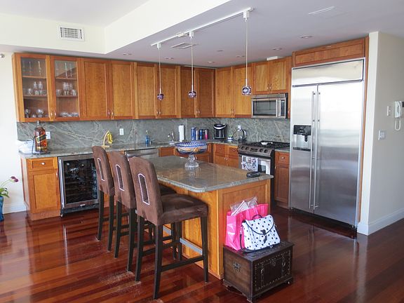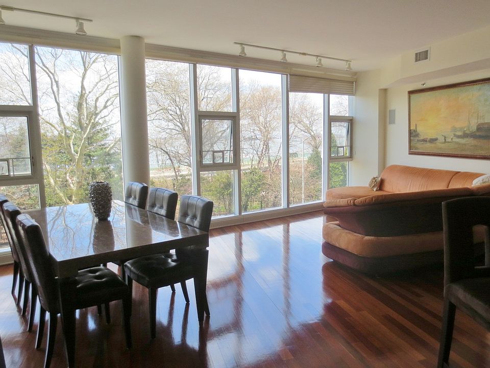Striking, spacious and modern Two Bedroom, with extraordinary light and amenities, on Shore Road facing the water in Bay Ridge. The private elevator exits onto the massive open floor plan with high ceilings and tremendous light from the wall of floor-to-ceiling windows, the generous space can be utilized in a myriad of ways. The state of the art kitchen with substantial granite counter tops, stainless steel appliances including Bosch oven, MW, DW and wine cooler is situated perfectly for entertaining. The king sized master suite hosts an onyx tiled and slate ground bathroom with Jacuzzi, huge walk-in closet and Balcony. Second large bedroom has an over sized window and large walk in closet. Hardwood floors throughout, central A/C, Washer/Dryer in the unit and the multitude of closet space all provide for comfortable living. Parking space is included. Located across the street from beautiful Narrows Botanical Garden and seconds from Veterans Memorial Pier and the magnificent Owls Head Park. Be conveniently close the thriving array restaurants and shopping in big box stores and proud local businesses which have created a go to destination in Brooklyn because of it's numerous advantages. Easy access to the express bus and R,N,and D trains. Live in a cutting edge, modern palace that also has warmth and charm. It has everything you're looking for and more. Contact us now for viewing.