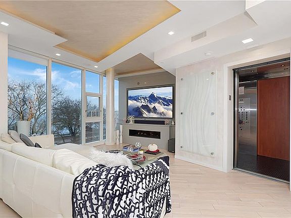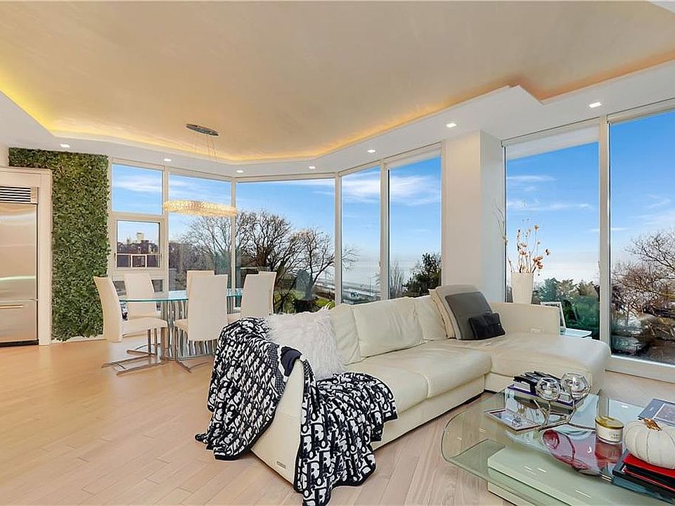Welcome to 6917 Shore Road. A building designed to bring Manhattan luxury to Bay Ridge. As you enter the building, you take a private elevator to 5B, opening directly into the living space. When you step off, you will walk into the serenity of luxury and opulence. A completely redesigned condo featuring a breathtaking 180 degree views of Shore Road and the New York Harbor, as seen through the nine-foot wall of floor to ceiling windows. The zen-like sunlight cast a beautiful warmth and light on the custom designed kitchen, featuring very sleek Wolf appliances. The open-concept kitchen flows into the living room and dining room. The primary bedroom features its own private bathroom and custom closet. The second bedroom features custom French doors that open to a private balcony. Also equipped with a custom closet, this bedroom can also be used as a home office. The hallway bathroom comes equipped with a jacuzzi tub, along with the finest fixtures. Opposite the bathroom is the new washer and dryer, conveniently placed and hidden. The unit has been completely upgraded and redesigned with the highest quality materials, along with a custom designed lighting system to further enhance the beauty of this home. With the sale of the unit, comes a parking space, on site, in a private and gated lot. You can install charging for electric vehicles. Snow removal from vehicles and lot are part of the property fees. The unit also comes with a storage space on the ground level. 6917 Shore Road is conveniently located near public transportation, including the 69 St Pier, for a quick fifteen minute ferry ride to lower Manhattan. The owner is selling the property fully furnished (with the exception of the primary bedroom set) to add to the experience. A list of custom furniture and light fixtures are available upon request.