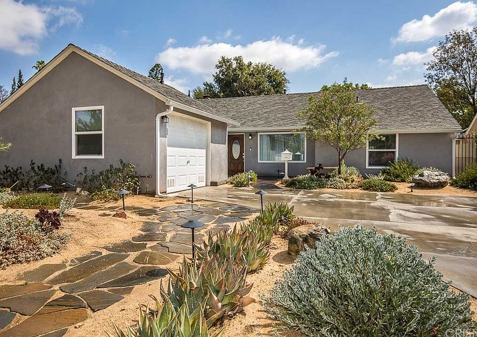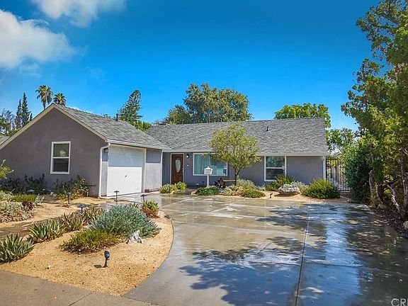 Beautifully updated single story pool home with great curb appeal located on a lovely tree lined street in Van Nuys. Attractive and low maintenance front landscaping and lighting. The upgraded galley kitchen has white cabinets with plenty of storage space, sleek granite countertops, glass backsplash, farmhouse sink, tile flooring and stainless steel appliances including microwave, dishwasher, and oven range. Light and bright living room and dining room with stylish wood like tile throughout. The modern tile along the fireplace wall in the living room makes the fireplace a great focal point. Mirrored closet doors and recessed lighting in both bedrooms. Guest bathroom is updated with tile flooring, tiled shower wall and a beautiful vanity. Spacious master suite with charming wood beamed ceiling, fireplace and glass sliding door to the backyard. Dual walk-in closets with built-in closet organizers. Master bathroom is updated with a contemporary dual sink vanity, tiled walk-in shower and tile flooring. Newer windows and copper plumbing. Entertainer's yard features a newly replastered large pool with a baja step added, newer patio cover equipped with ceiling fans, stamped concrete and fire pit. The laundry area is located in the oversized single car garage. Great location and move-in ready!