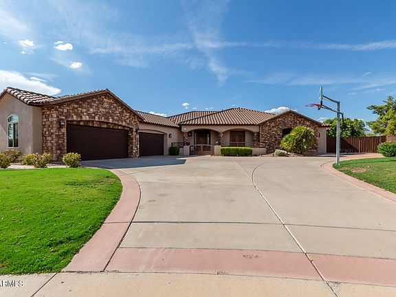 Welcome to this stunning single story custom home on a 30,000 + Square foot lot with North/South lot. In Northeast Mesa! This is the complete package! New AC units in June 2024, Owned solar system.Kitchen boasts Huge Island, Maple Cabinets, large walk-in pantry, with Granite counter tops. Travertine Tile inside and outside. Great room features Beautiful Stone Wall with Gas Fireplace, Beamed Ceiling, and Double French Doors, and 12-inch Glass Doors. Office with separate entry, can also be used as 4th bedroom. Coffered ceilings throughout. Master Suite with French Doors, Gas Fireplace with sitting Room or workout area. Luxurious Master Bath and Fully built out Master Closet. Enjoy another day in Paradise in your resort style back yard with large extended patio and stunning Pool/Spa 4 car garage, spacious area for RV Parking and oversized driveway, minutes from 202, Highly Rated Schools, close to hiking and biking trails. Conveniently located minutes from shopping, restaurants, and more!