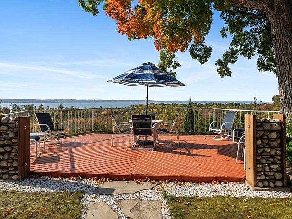 Rarely do properties of this caliber and location become available. Immerse yourself in the breathtaking views of Little Traverse Bay from this expansive 1.67-acre property. The meticulously landscaped grounds create a serene environment to appreciate the vista. Inside, the contemporary design elements harmonize with timeless aesthetics, offering a perfect blend of style and comfort. With four spacious bedrooms and baths, tranquility and luxury are guaranteed. The lower level Master Suite boasts separate his and her baths, a sauna, a whirlpool, and a stunning gas fireplace, all while overlooking the picturesque bay. Stay cool with the mini-split air conditioning and air tower system. The spacious kitchen is a chef's dream with two sinks, modern appliances, and elegant granite and marble countertops. A heated oversized garage provides ample space for your vehicles. Located less than 2 miles from downtown Harbor Springs, this property offers a perfect combination of comfort and convenience. Except for some personal items, this home is being sold turn key.