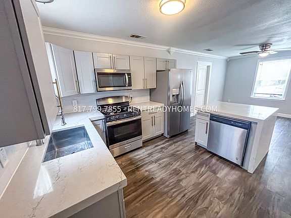 Welcome to this charming 3-bedroom, 2-bathroom home in Dallas! This property features a spacious open floor plan with a bright living area that flows seamlessly into the updated kitchen. The kitchen comes fully equipped with modern appliances including a refrigerator, stove, dishwasher, and microwave, along with generous cabinet space and a large island for convenience.
