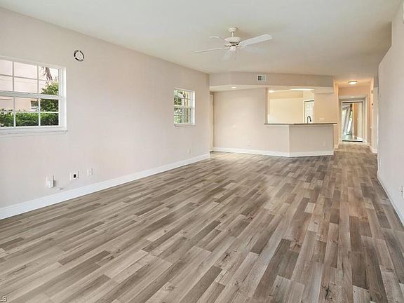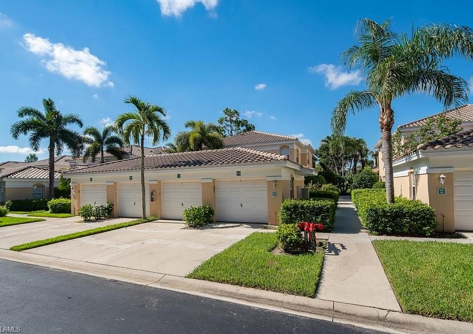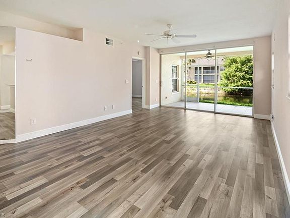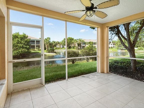 The recently renovated first-floor corner unit offers a constant stream of light into the residence as well as a gorgeous view of the lake and fountain. This 3 bedrooms 2 bathrooms split concept unit has new flooring throughout as well as all new kitchen cabinetry with granite countertop, fresh paint, new garbage disposal, and newer refrigerator. The unit comes with a detached garage for all the needed extra storage and parking your car in shade. Living in Calusa Bay, you get to enjoy 16 acres of stocked lakes, fishing pier, nature walk, 2 swimming pools, clubhouse, fitness center, community library, sundeck, tennis courts, and much more. Buildings also have new roofs! Calusa Bay is ideally located in the popular North Naples area just a few minutes away from the white sugar sand beaches, variety of dinning options, and quick drive away from the popular entertainment hub of Mercato.