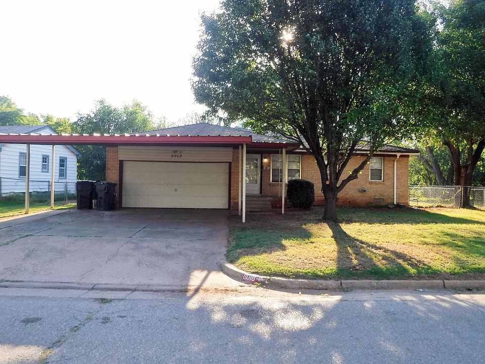 3 bedrooms, 1.5 baths-new paint. Laminate flooring throughout. Bathrooms updated. 2 car garage with large carport. Corner lot nice backyard with storage building and storm shelter. Rent is $1150, Deposit $1150. Sorry this home is not approved for OCHA or OCFA vouchers. Requirements are verified income minimum 3 X the rent, no evictions, no felonies. No pets allowed, no smoking allowed. I pass out applications when we meet at the house.