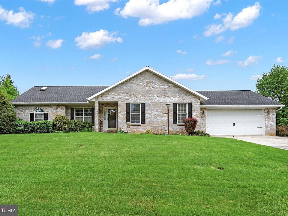 Brick front ranch in master-planned Penn National Community! This home features a customized Westwind floor plan. Three bedrooms, two baths. Welcoming front porch leads to Great room that has cathedral ceilings, ceiling fan, and fireplace. Primary suite has walk-in closet. Main level laundry is conveniently situated between the kitchen and oversized garage. Unfinished basement has potential for storage and flex space. Schedule your tour today! Lovely walkable community offers 36 holes of 4-star golf, outdoor pool, tennis/pickleball, yoga, community garden, 40 + social clubs, restaurant/bar, and so much more!!