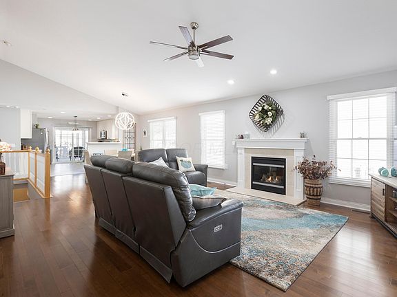 Rare oversized lot in the Dominion Club offers spacious ranch living with an open floor plan, 3 bedrooms, and 3 full baths. The kitchen features tile flooring, Corian countertops, new stainless-steel appliances, and direct access to a large screened-in porch perfect for morning coffee or evening gatherings. The main level includes three bedrooms, including an expansive primary suite with a walk-in closet and a newly remodeled ensuite bath with a walk-in shower. Two additional bedrooms share a full hall bath. The lower level dramatically expands your living space with a generous rec room with egress, a full bath, and a large workshop/storage area. Major improvements provide added peace of mind: all mechanicals were replaced in 2018, and the roof was updated in 2020. Enjoy a relaxed, low-maintenance lifestyle in this welcoming 55+ community featuring a clubhouse, pool, and easy access to parks, shopping, and local dining. Lawn care and snow removal are included, giving you more time to enjoy the amenities.