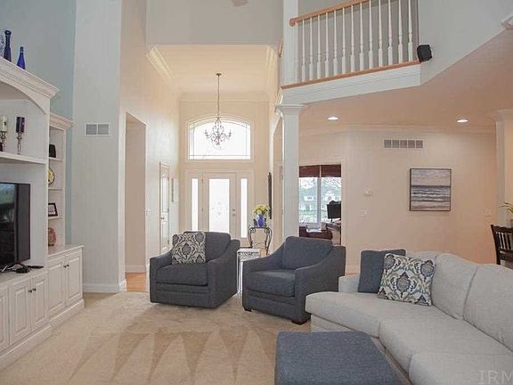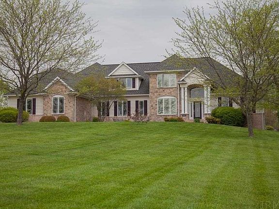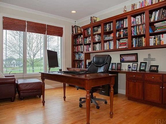 This exquisite home offers excellent quality, a preferred location on a 7.5-acre lot, and your own basketball gymnasium! Step inside the foyer where you will be greeted with beautiful hardwood floors, a 2-story entry, and a view of the open floor plan. The office/den features Fehrenbacher cabinets and shelving, hardwood floors, and large windows for plenty of natural light. The great room is also full of natural light and includes tall ceilings, a gas fireplace and custom built-ins. You will love entertaining family and friends in the oversized, eat-in kitchen that boasts a large island with solid surface countertops, custom Fehrenbacher cabinets, stainless steel appliances, and a large walk-in pantry. The primary bedroom is on the main level and includes an ensuite with two separate vanities, a large walk-in shower, and two large closets. With plenty of space, the main level laundry room, that includes a drop zone, makes even the worst of laundry days tolerable. On the second floor, you'll find three additional bedrooms, two full baths, a bonus space, and a landing area that is perfect for relaxing with a good book. The walkout basement is the perfect spot for family fun and entertaining with the great-sized family room and a second kitchen. Basketball is alive and well in Indiana with the spectacular 3,132 sqft gymnasium. This must-see recreational facility with 6 large Bose speakers is perfect for all sports and activities. Looking to get away from it all? The screened-in porch and the private backyard provide just the peacefulness and tranquility you need. Additional features included: attached 3.5 car garage, irrigation system (front yard), work-out room, composite deck, built-in lockers, two new water heaters, Built by John Elpers.