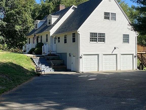 This oversized cape style home, filled with natural light, sits on a beautiful, private lot. Large dining room with cathedral ceilings opens to a huge, cabinet-filled kitchen with dining area, granite counters, large island, double oven gas range and French doors to a deck. Recently painted living room is bright with exposed beams, and a fireplace. First floor master suite has a fireplace, private deck, and full bath. Loft area (office or den) upstairs overlooks the dining room. Second bedroom has private deck and walk- in closet. Full bath and third bedroom complete the second floor. Other features include new oil fueled water heater, Harmon pellet stove, central AC, insulated 3 car garage, large driveway and easy access to Rt. 20, I90 and I84. Do not miss a chance to call this home yours as it is sure not to disappoint. Sellers plan to review all offers Sunday 9/13 at 8 pm. Please submit all attached docs. signed with offer. Masks and gloves are required for showings.