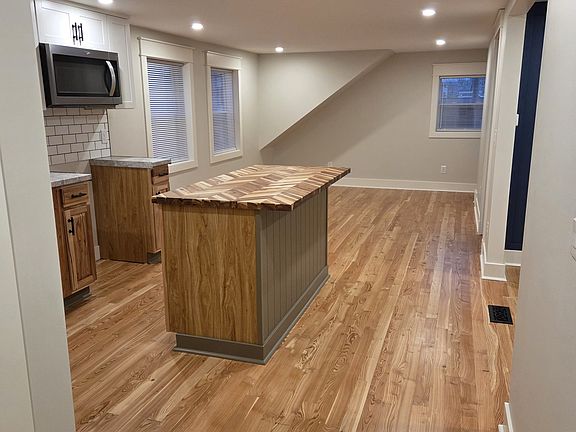 Totally renovated house from the ground up. 2 bedroom 1 bathroom. New hardwood floors, new kitchen, new bathroom, new trim, fresh paint. Brand new appliances and a brand new back porch on the house. Laundry hookups ups in the basement and off street parking. Driveway snow removal, lawn care, water and garbage included.