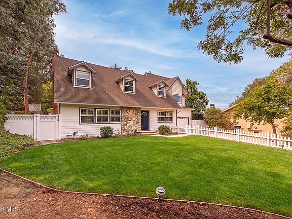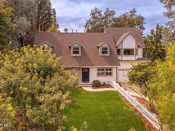 COME SEE this quintessential country-chic home in the heart of incredible Conejo Oaks! Picturesque behind its white picket fence, as if plucked from a Norman Rockewell painting, this fantastic 5 bedroom + 4 bathroom abode offers flexible living arrangements thanks to a bedroom and bathroom with tub/shower downstairs. Freshly painted inside and out, this 2,733 sq ft gem boasts a grand main bedroom complete with en suite and separate sitting area/office in a stunning bay window, as well as a junior main bedroom with en suite. That's 3 large bedrooms each with its own bathroom! The eat-in kitchen features stainless appliances, large island, and impressive stone fireplace. Outside, spend pleasant moments entertaining guests on the patio surrounded by mature trees, or watch little ones and pets play in the front and back lawns, or just dip into the refreshing saltwater pool. A tankless water heater and two A/C zones make this charming home comfortable and efficient. Add in a 2-car garage with large work space, INCREDIBLE schools, and great location near dining and shopping, and you will absolutely love your luxury lifestyle in Conejo Oaks!