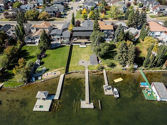 *Welcome to Lakeside Luxury on Chestermere Lake* With 4,482 sq. ft. of fully reimagined living space, this lakefront estate blends architectural sophistication with modern comfort on one of Chestermere Lake’s most exclusive stretches of shoreline. This complete renovation and design by JTA Design is an intricate remodel + extension, showcasing soaring 10’ ceilings, bespoke finishes, and walls of glass that capture sweeping water views. The foyer, framed by a 4 ft. Lux custom glass door, makes a bold first impression with a glass~encased home office and a see~through fireplace leading into the stunning living room. Floor~to~ceiling windows and European sliding doors create seamless flow to the outdoors, where a massive backyard, fire pit, and private dock invite year~round entertaining. At the heart of the home, the chef’s kitchen is a masterpiece ~ anchored by a Taj Mahal natural quartzite island, complemented by JennAir appliances, a butler’s pantry, and a limewashed plaster custom hood fan that compliments the natural stone backsplash. Brizo plumbing fixtures in champagne bronze + matte black, Lo & Co + Emtek hardware; and custom~designed lighting elevate every detail, while white oak cabinets and hardwood floors add warmth and texture throughout the home. A spacious mudroom that rivals the aesthetic of any competing luxury home, leads to the 4~car garage with a tucked~away workshop. The garage floor was transformed with a stunning, heated, metallic epoxy finish, providing both beauty and durability. LED sensors throughout the home create an unrivalled nighttime ambiance, and an exposed epoxy rear deck extends the entertaining space. Upstairs, a vaulted bonus room with the home’s original fireplace nods to its heritage, while a dual~desk workstation in the hallway adds functional elegance. Two secondary bedrooms and two larger master waterfront retreats capture lakeside serenity perfectly. The primary suite is pure indulgence, featuring a spa inspired ensuite with a steam shower, heated bench and floors, which flows seamlessly to a massive walk in closet with micro~shaker drawers and velvet encasements. Even the laundry room makes a statement, with classic black and white checkered flooring adding a charming and whimsical touch to this architectural marvel. This is more than a home ~ it’s a statement in design, craftsmanship, and lakefront living.