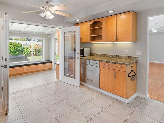 Overflowing with curb appeal and charm, this turn-key 3 bedroom, 2 bath single-level, mid-century cottage is located in the heart of La Mesa. Featuring original 1950's hardwood flooring, beautiful streams of natural light and unique large picture windows in the central living area. Upgrades include a large kitchen with maple shaker cabinets, granite countertops and stainless appliances. Adjacent bonus room connected with gorgeous double French doors, custom built-in storage and banquette seating that could be a beautiful office, play room, guest room or dining area. Crown molding throughout, A/C, dual paned energy efficient windows and exterior French door to side yard. Large grass back yard with privacy and sectioned areas for garden & dog run. Two car garage and additional parking in the driveway. Fantastic location just 9 miles from downtown San Diego and close freeway access for commuting. Minutes to top-rated schools, universities and community activities.