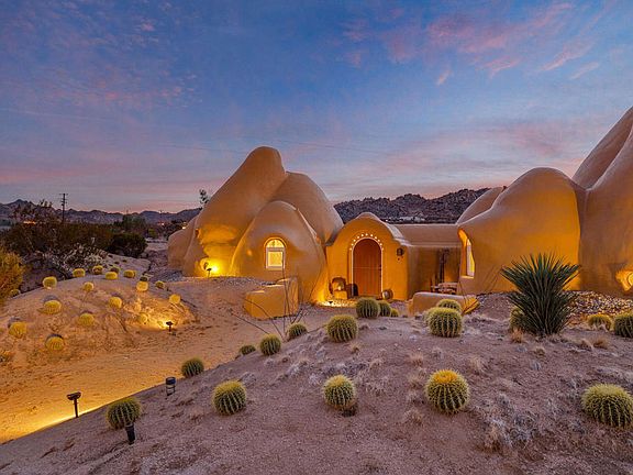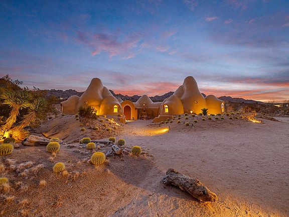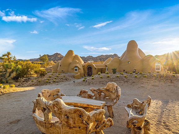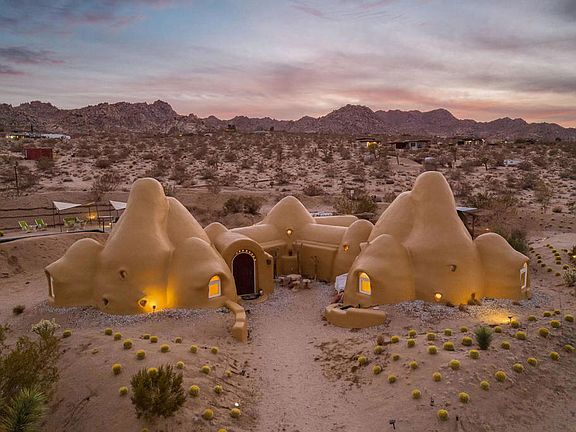 Where Earth Architecture Meets Shamanic Art! The iconic Bonita Domes in Joshua Tree, CA, are a true desert masterpiece--an unparalleled fusion of art, architecture, and nature. Built over seven years by visionary Lisa Starr and based on designs by the late SuperAdobe pioneer Nader Khalili, this eco-conscious compound is crafted primarily from locally excavated earth, blending seamlessly into the rugged desert landscape. Set on a serene 2-acre lot, this one-of-a-kind retreat features a primary living dome, multiple sleeping pods, and inviting communal spaces designed for relaxation, connection, and creativity. Organic curves, earthen materials, and celestial skylights create a harmonious living experience, while modern comforts ensure effortless functionality. Step outside to breathtaking panoramic views, an in-ground pool and spa, sunken fire pit, and expansive outdoor lounge areas, making this the ultimate desert oasis. At night, immerse yourself in world-class stargazing, with some of the darkest, clearest skies in Southern California. Featured in **Dwell Magazine**, **Architectural Digest**, & **Zillow Gone Wild**, Bonita Domes has captured global attention as an architectural treasure. Just minutes from Joshua Tree National Park and the vibrant village, this highly sought-after short-term rental and creative retreat offers an unparalleled lifestyle. Don't miss this extraordinary opportunity to own one of the most unique properties in the Hi-Desert!