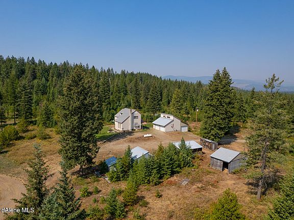 Come live the North Idaho dream! Private and unique setting on 10.19 partially wooded acres with no CCRS. This home abuts to over 1,000+ acres of state/govt land with lots of wildlife and is also zoned R5 so has potential to be split into two 5-acre parcels. Home features 1400+sqft with unfinished basement, 3b/2b, with main floor master suite and utilities. A two-car detached garage with above loft/hobby room and attached woodshop with additional garage bay. Numerous outbuildings on property for lots of storage and options. Extra touches are newer pellet stove, water softener, 2x6 framing, 220 to garage and electric to most outbuilding. All on a public maintained paved road and under 15mins to new Super 1 grocery store, shopping and restaurants in Athol. About 30 mins to Coeur d'Alene. This home and property has a lot of potential and possibilities come see today and start living the Idaho lifestyle!