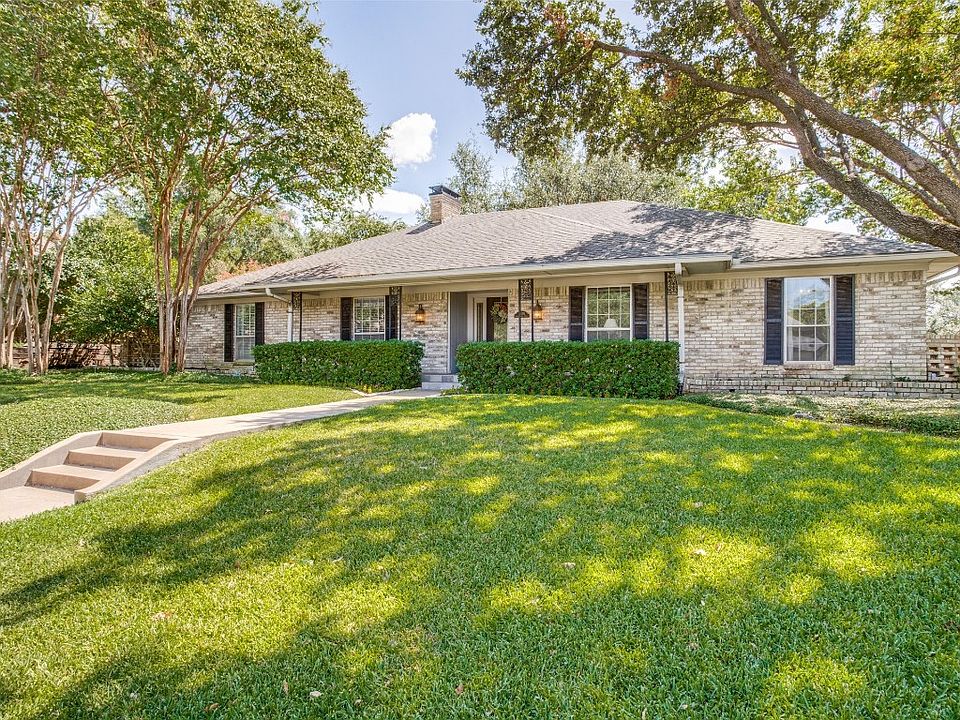 Elegant 5-bedroom, single-level Prestonwood home. Lush backyard oasis with a swimming pool, mature trees, and a wall of French doors and windows leading into the den from the patio. Excellent flow with 3 living areas, 2 dining areas, and an updated kitchen with stainless steel appliances and granite kitchen countertops. Highlights include hardwood flooring, gas fireplace, skylights, multiple built-ins & recessed lighting. Oversized master bath with a jetted tub and separate shower. Located within the well-regarded Richardson ISD with managed choice junior & high schools. The desirable Prestonwood neighborhood is conveniently situated close to main commuting routes, parks, shopping, and dining!