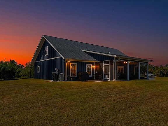 Welcome to your dream retreat! This stunning 3 bedroom, 2 bathroom home, built in 2021, sits on 4.81 acres of serene countryside, overlooking a pristine private pond and surrounded by lush greenery and endless blue skies. Step through the elegant front French doors and be greeted by soaring high ceilings, beautiful vinyl plank flooring, and a spacious open-concept layout that seamlessly blends modern comfort with timeless farmhouse charm. The expansive living area flows into a formal dining room illuminated by stylish fixtures, while the showstopping kitchen steals the spotlight with ample cabinetry, quartz countertops, a deep farmhouse sink, unique tile backsplash, stainless steel appliances, and a large center island with seating, perfect for morning coffee, casual gatherings, or festive holiday brunches. Down the hallway, retreat to your massive primary suite, featuring large windows that fill the space with natural light. The en-suite bathroom offers his-and-her sinks, a spa-like walk-in shower, and an impressive walk-in closet designed for effortless organization. The second bedroom and full bathroom provide comfort for family or guests, while the convenient laundry room includes a small walk-in shower, ideal for rinsing off muddy boots or playful pets after outdoor adventures. Upstairs, discover a spacious loft bedroom that can serve as a private guest suite, a sunny home office, or a family game room; the possibilities are endless! Step outside to the fully screened-in porch, the ultimate spot to unwind with a glass of wine while watching the sunset, listening to the sounds of nature, and enjoying peaceful pond views. The backyard oasis offers multiple garden areas, fishing opportunities, and plenty of room for pets to roam and play. It also includes a large storage shed for housing all your tools and outdoor equipment. Centrally located in a no-HOA neighborhood, you’ll have the freedom to make this home exactly what you want, without added fees, while still being close to major commuter routes, shopping, dining, and just 30 miles from the world-famous beaches of Siesta Key. Whether you’re seeking a tranquil getaway or a forever home that blends modern design with country living, this property is pure perfection. Contact the listing agent today to schedule your showing before it’s gone!