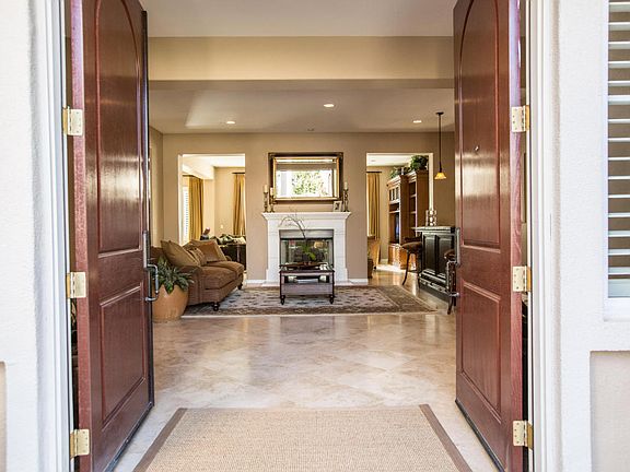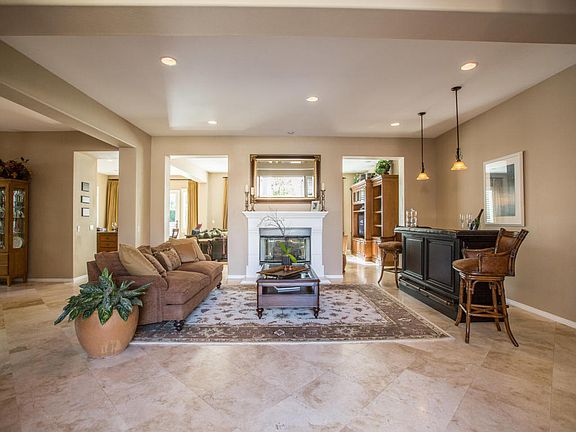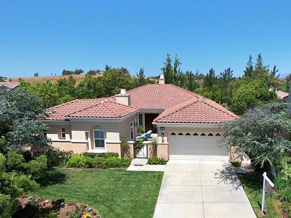 JUST LISTED! Very hard to come by SINGLE STORY in the gated community of Moorpark Highlands! As you enter the property, enjoy the private courtyard with a gas log fireplace! This property features travertine floors throughout, kitchen with granite counter tops/Island, stainless steel appliances and a water filtration system. Kitchen opens to the spacious family room, with built-in wood entertainment center, dual sided fireplace, central vacuum and plantation shutters throughout. Large master bedroom has an upgraded master bath, with tumbled travertine countertops, shower, spa tub and walk-in closet with custom built-ins. Large pool size backyard has been professionally landscaped and features a large patio and a custom barbecue, perfect for entertaining! HOA has a community pool, spa, and tennis court! Close to freeways. You must see this beautiful home to appreciate!