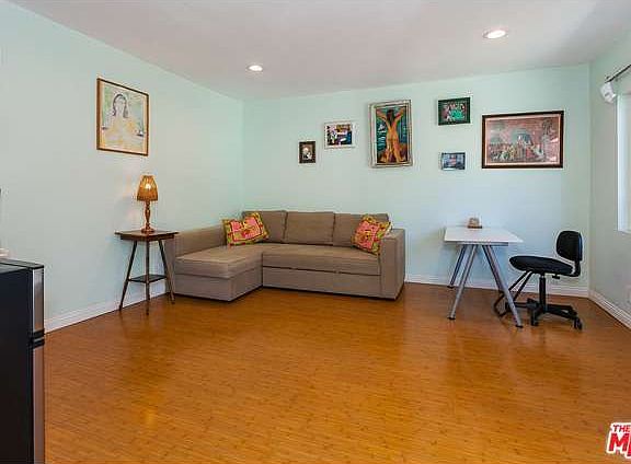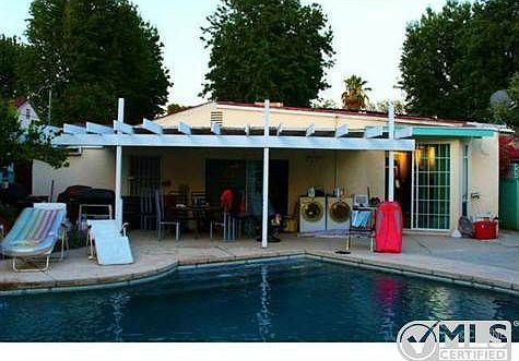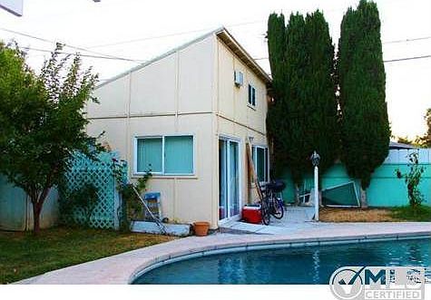 Beautiful updated pool home. One of the 3 bedrooms has been converted into master suite closet/dressing room. Gourmet kitchen has solid wood cabinets with granite countertops, Grohe fixtures throughout. Giant sound studio with professional recording booth and bathroom attached. European bathroom boasts Jacuzzi tub, subway tile and European vanity. Sparkling pool with pool shed/space tastefully decorated. Backyard has apple, blood orange, comquat, avocado trees.. Front yard is droughtscape. Cool roof installed in 2013. Whole house water system with RO in kitchen. Light and airy.