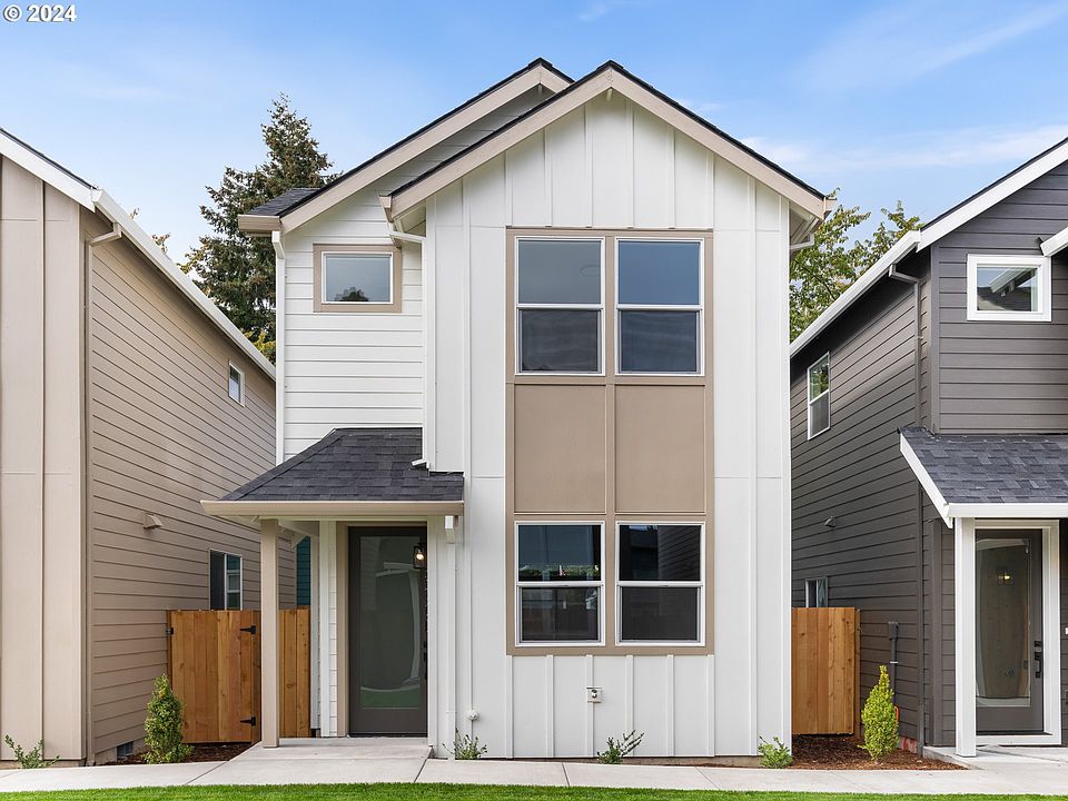 No money down - 100% financing options available! This is not a condo, no HOA! Discover the perfect blend of modern elegance and convenience in this stunning home, ideally located just 0.3 miles from all your favorite amenities, including coffee shops, grocery stores, parks, trendy boutiques, and delightful restaurants. Step inside and be captivated by the beautifully designed kitchen, featuring warm cabinetry, exquisite tilework, sleek black finishes, and gleaming stainless steel appliances. The kitchen seamlessly opens to the dining area and inviting living room, making it an entertainer's dream or a cozy space for relaxation. Enjoy effortless indoor-outdoor living with a slider leading to your private yard. Upstairs, you'll find a bright and airy primary suite, along with an additional spacious bedroom, both illuminated by lofty ceilings and expansive windows that invite natural light. Don't miss this opportunity to call this gem home! Enjoy the peace of mind that comes with new construction, complete with a 1-year builder warranty from a reputable local boutique builder. (List price is subject to the buyer qualifying for the Portland Housing Bureau - System Development Charge exemption program to promote affordable housing in Portland, call for more info.)