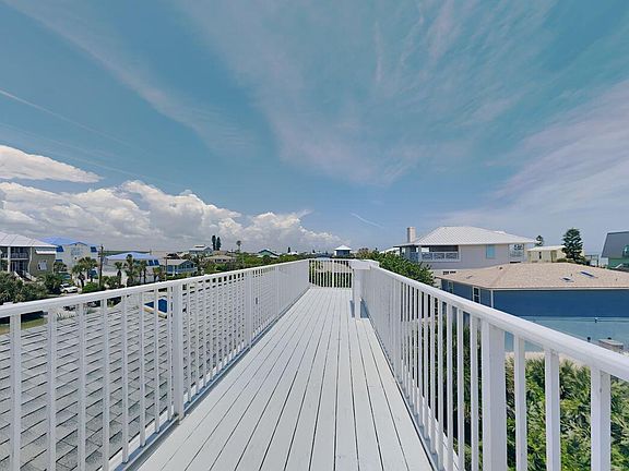 Want to enjoy that laid back beach town vibe? Then this pool home is a must see! Located in eclectic New Smyrna Beach, this 2-bedroom 2 bath home, plus mother-in-law suite is perfect for entertaining. Enjoy the sun, the soft ocean breezes, plus ocean and river views from the rooftop deck and peek-a-boo ocean view from the living room! The spacious open floor plan offers a breakfast bar and living room/dining room combo. Kitchen was recently renovated, features black stainless appliances, silestone countertops, and gorgeous new flooring. Two bedrooms with incredible lighting and deck access! Fully enclosed concrete block downstairs has a HUGE double garage, bedroom, bathroom with shower, and living room opening out to a screened pool oasis. Beautiful driveway pavers. Gorgeous landscaping. Accordion hurricane shutters. Take a short stroll to the beach or the river. JB's restaurant on the river is right around the corner! Canaveral Seashore Park is a 5-minute walk. This spectacular home is truly a must see to appreciate all its incredible features.