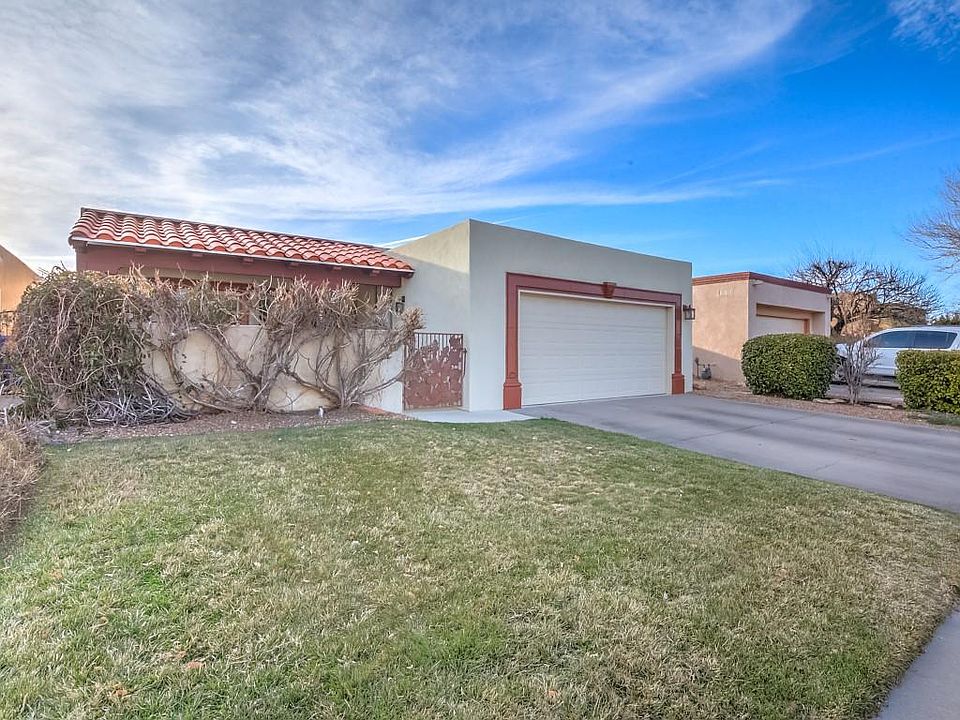 OPEN HOUSE Sun Mar 11 12-2pm! Be wowed when you step into this delightful, hard to find single story patio home in the gated Tanaon subdivision. This upgraded and upscale home features a stunning living room with high, beamed ceilings, saltillo tile floors and a gorgeous fireplace. The dining room is open to the living room and creates a wonderful space for entertaining. The gourmet kitchen is a delight with a wine refrigerator & sunny breakfast room with beautiful mountain views. The bedrooms have new carpet installed in March 2018. Backyard is both easy maintenance and an entertainer's delight, with beautiful outdoor kitchen. The front patio is perfect for watching the sunrise over the gorgeous Sandia mountains. The home is also really quiet and feels private and comfortable. Enjoy!