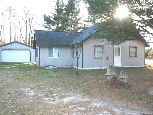 Well cared for 4 bedroom 1 bath home on 10 acres bordering 1000's of acres of State Land. This 1 1/2 story home has 2 bedrooms on the main floor and 2 upstairs, a wood stove in the living room for extra heat, an enclosed porch with laundry hook ups, 2 car detached garage. The property is 10 acres in size and backs up to thousands of acres of State Land. This is a nice private setting, the current owners built this as a weekend get away and hunting and snowmobiling camp. Make this your new home or family get a way location.