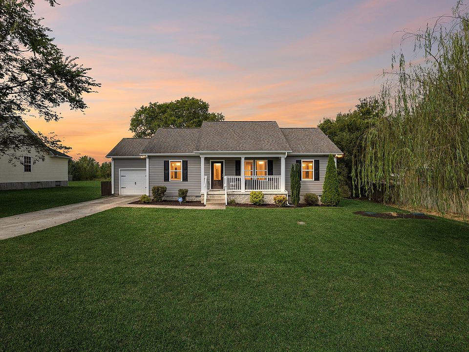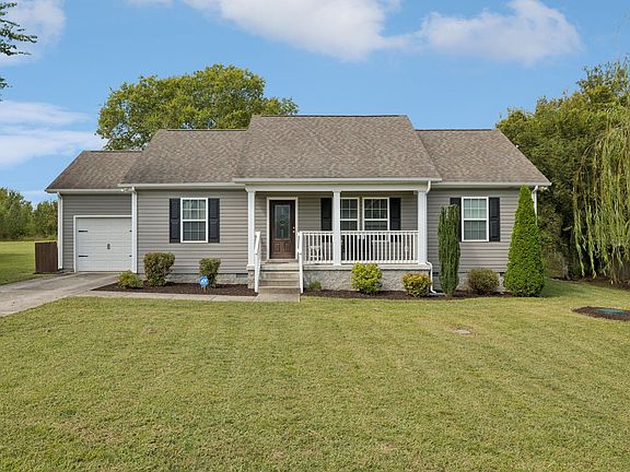 Welcome to this beautiful ranch-style home offering all main-level living on an oversized lot! Situated on nearly half an acre, this property boasts space, privacy, and updated style with no HOA restrictions. Inside, you’ll find vaulted ceilings, stainless steel appliances with an oversized farmhouse sink, and custom built-in cabinetry in both the primary closet and garage for incredible storage. Step outside to enjoy the covered front porch, a spacious back deck (freshly re-finished) overlooking the treeline, and a large backyard perfect for entertaining or relaxing in privacy. Mature landscaping adds to the charm, while the detached storage shed offers even more functionality. This home is truly move-in ready with thoughtful upgrades and plenty of room to spread out - Murfreesboro living at its finest.