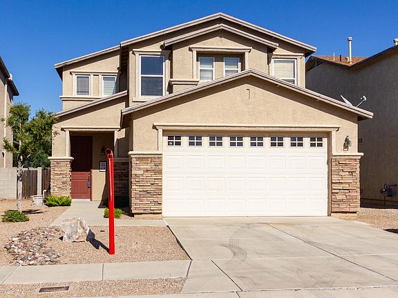 Wonderful 2-story home in the popular Julian Ranch West subdivision. This light and bright home offers 3 bedrooms, 2 1/2 baths and 2-car garage. Spacious great room concept featuring laminate wood flooring. Kitchen with breakfast bar, lots of counter space and pantry closet. Convenient 1/2 bathroom on main floor. Upstairs, find large master bedroom with walk-in closet. Master bath with shower/tub combination. Also find 2 additional bedrooms plus guest bath with shower/tub combo. Laundry room conveniently located upstairs too with washer & dryer included. Enjoy the weekends in your large private back yard with built-in BBQ. Close to the !-10, less than 20 minutes to Davis- Monthan AFB, Raytheon, downtown Tucson and the convenience of the Julian Wash Bike Path.
