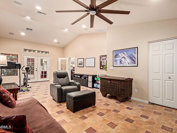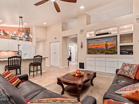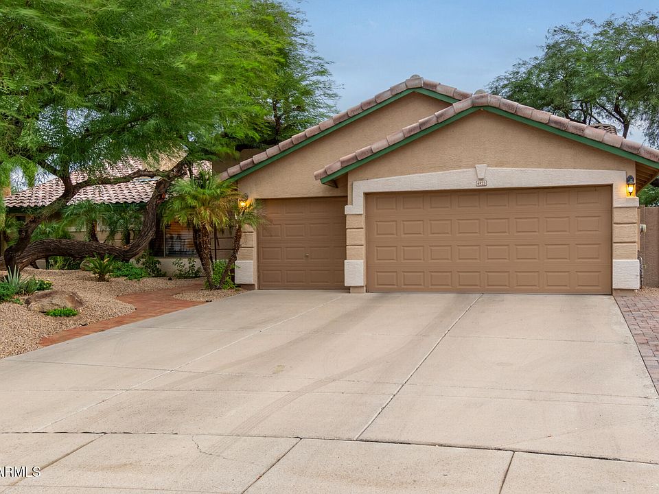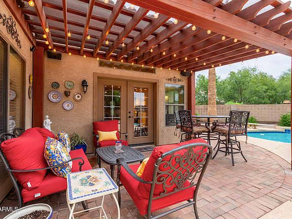 Hard-to-find large cul-de-sac lot in the desirable Patrick Ranch community with RV Parking! This beautifully maintained one-owner home offers a spacious layout featuring a huge bonus flex room with a closet and private bath--perfect for a second master suite, guest retreat, or home office--with easy access to the stunning backyard and a sparkling diving pool for seamless indoor-outdoor living. Enjoy beautiful curb appeal with an RV gate, three-car garage, additional paver parking, and a paver walkway leading to the front entry. The great room centers around a cozy gas fireplace and opens to the formal dining area, all enhanced by cathedral ceilings throughout. Pre-wired surround sound is available in the great room, family room and bonus room. The office/den features double doors and connects to three spacious bedrooms. The primary suite offers a double-door entry, walk-in closet, separate heated jacuzzi tub and shower, dual-sink vanity, private toilet room and a sliding glass door with direct access to the backyard oasis. The heart of the home is the kitchen, which flows into the main living areas featuring a center island with counter seating, gas range, and a charming breakfast nook overlooking the backyard. Set on a 22,000 sq ft lot designed for relaxation and entertainment, the backyard showcases an extended covered patio, sparkling diving pool, custom pergola with mountain and sunset views and an expansive side yard perfect for RV Parking with a 30-amp plug-in and tool shed. A cozy corner seating area surrounds a six-foot soothing water feature, with mature landscaping front and back. Conveniently located near top-rated schools, restaurants, shopping, and Thunderbird Park with hiking trailsplus quick access to Loop 101 and I-17 freeways. This exceptional property truly offers everything you ever wanted in a home!!