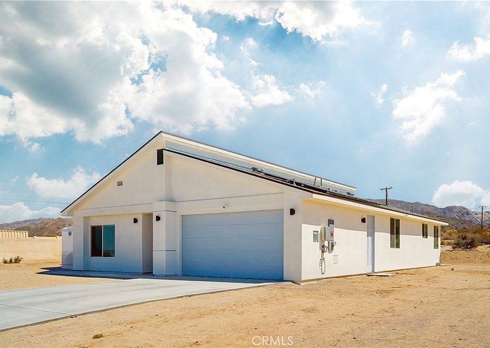 Let the Sun Shine! Modern Retreat in Indian Cove, 29 Palms This stunning 2023-built, 1,857 sq ft contemporary home in Indian Cove, 29 Palms, boasts 4 beds and 3 baths on a 1.1-acre lot with a modern split-level roof design that redefines possible. Step inside to dramatic high ceilings, sleek laminate flooring, and recessed lighting and natural light that flows and enhances the airy ambiance. The home is replete with energy-efficient windows and doors meeting California’s 2020 Title 24 standards. What else? Fully PAID OFF SOLAR SYSTEM to keep utility costs low, paired with enhanced insulation and fire suppression sprinklers to possibly lower the insurance bill and give peace of mind. The open-concept living room and kitchen blend modern design with warmth and comfort. The gourmet kitchen features modern appliances, quartz countertops, ample cabinetry, and a spacious pantry, ideal for entertaining. Bathrooms exude elegance with sleek fixtures and a spa-like serenity while the bedrooms are sunlit sanctuaries with large windows framing dramatic desert views. And what views we have in Indian Cove! Sunlight provides a daily light show both morning and evening. Ample closets and a two-car garage provide storage. This home is Impeccably maintained, with those high ceilings, recessed lighting, quartz countertops and a feeling of elegance, this is the finest home in 29 Palms on the market today. The lovely Indian Cove neighborhood is just 10 minutes from downtown 29 Palms shopping, 15 minutes to the USMC base, 15 minutes to the entrance of Joshua tree National Park and just an hour to the urban amenities found in Palm Springs. And there are hiking trails right in this neighborhood. 29 Palms is growing and the area offers outdoor adventures and cultural vibrancy and continues to be a destination from big cities. This beautiful home would be perfect as a primary residence, weekend getaway, or a solid investment—let the sun shine on your new chapter!