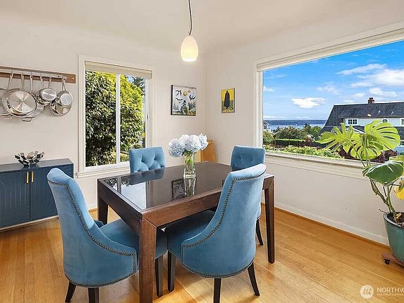Step into serenity & charm in the heart of Gatewood. This spacious 5bd, 2.5ba home offers over 2,590 sf of living space. Perched high up on a quiet street, this home boasts stunning views of the Sound & Olympic Mountains. Inside, you'll find timeless character blended with modern updates, including hardwood floors, a cozy fireplace, & a light-filled kitchen w/ premium appliances. The upstairs primary suite is a true retreat, complete with a ¾ bath, sweeping views, & dedicated heat pump to keep cool. Renovated basement w/ 2bd's, fam rm, & wet bar. Highlights include updated electric & plumbing, central A/C, 1-car attached garage, 2-car detached w/ alley access, & a fenced backyard oasis perfect for relaxing or entertaining.