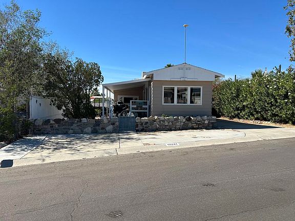 Completely Remodeled & Well-Maintained Home!This beautifully upgraded 2-bedroom, One and 1/2-bath home offers comfort, style, and move-in-ready living. The fully remodeled kitchen and bathrooms feature modern stainless steel appliances, all included in the sale along with all the furniture. Enjoy double-pane windows and sliding doors with internal blinds, plus laminate flooring throughout.Relax in the spacious and inviting patio areas -- perfect for unwinding after a long day -- with two patio decks to enjoy the views. The property also includes a convenient one-car garage with washer and dryer, a storage shed for tools and personal items, and is one of the few homes in the community featuring a cellar for extra storage.Located in the beautiful Desert Crest Country Club, a 55+ senior own-your-own-land community (no space rent!) with low $148 monthly dues. Amenities include unlimited golf on a 9-hole par-3 course, a genuine hot mineral water pool and spa, clubhouse with game room, library, gym, entertainment facilities, and 8 enclosed shuffleboard courts.All streets are county owned and maintained, with city water, sewer, natural gas, and cable/satellite services. Desert Crest offers an active lifestyle with aqua-aerobics, longevity (stick) exercises, line dancing, weekly gatherings, dinner dances, bingo, golf, and shuffleboard -- making it the perfect place to live and play!