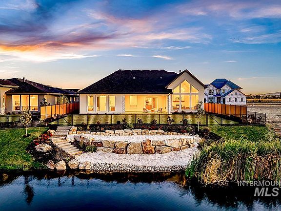 Lakefront living with direct access to the lake from its own private beach! This Palisade floorplan WITH an RV garage has everything you could want in a single-story home. A long entryway creates a grand opening into the home. The most stunning features include the vaulted ceiling, wine room, and beautiful dual fireplace that brings warmth to the home. The gourmet kitchen flows off the dining and great room and includes a large island and butler's pantry. The master suite is another amazing highlight w/ wall-to-wall windows, large walk-in closet, and direct access to the covered patio. The adjoined master bath is loaded with luxurious finishes, including a free-standing tub and fully-tiled shower. Coming soon, the River Park Estates Clubhouse will offer endless opportunities for activity and relaxation, including pickleball, swimming, and more, all within walking distance of the Boise River. River Park Estates is your own private river park. Ready now. Contact listing agent for tours. Photos Similar