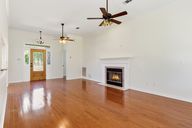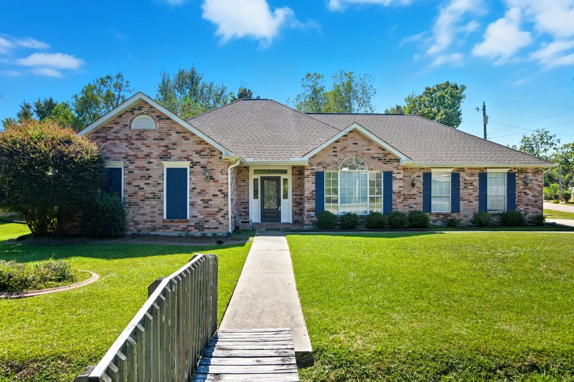 Side-entry two-car garageCovered back porchCozy fireplaceFormal dining roomSplit-bedroom floor planCorner lot