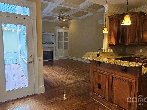 Finished basementTray ceilingsCoffered ceilingHardwood floorsHeavy moldingsOpen kitchenGranite countertops