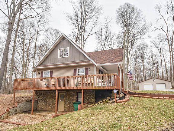 This comfortable residence sits on four private acres on idyllic Maple Grove Road. Much of the one and a half story home has been updated over the past five years, making it move-in ready for you! The living room has a beautiful and dramatic vaulted bead-board ceiling and an electric fireplace. The kitchen features plenty of storage space with stylish open and glass cabinet accents and stainless-steel appliances. The kitchen is open to both the dining room and the living room. There is also a cozy family room providing another living space. The upper level is a master suite sanctuary with two closets, an en-suite bath and a loft room with another beautiful vaulted bead-board ceiling. There is a separate laundry room and an unfinished walkout basement with endless possibilities. The lovely, private country setting can be enjoyed from the covered front porch, the wrap around deck and walking in your own woods. A huge detached garage currently houses three cars, an off-road vehicle, a motorcycle and bicycles with more room for a workshop or additional storage. Dont hesitate to schedule a private showing!