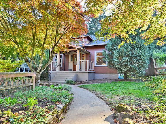 1908 Bungalow on nearly a quarter acre lot directly bordering Mt. Tabor Park! Unpainted original woodwork in large rooms with built-ins and 9 foot ceilings, refinished fir floors, pocket doors, off-street parking pad for 2 cars, lots of garden space in front, built-ins, master on main with full bath, claw foot tub, shed in expansive backyard with several raised beds. Potential to put master suite upstairs - this location will hold value. (Backs up to Tabor's lower playground and tennis courts.)