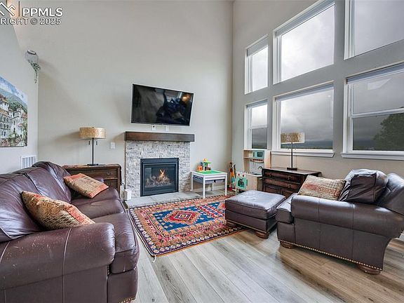 Cue the Happy Dance - this Painted Sky Home has everything you are looking for, and more! Say Hello to the home that checks all the boxes. Located in a vibrant community, close to Ft Carson and Peterson SFB, this stunning 4 bedroom, 4 bath home was built in 2021 and perfectly blends modern design with energy efficiency, and breathtaking views of Pikes Peak. Step inside to an open concept living area with a cozy gas fireplace. The updated kitchen with high end finishes comes complete with a new dishwasher, new water heater and the paid off solar panels make living comfortable and sustainable by reducing your energy bill significantly. It does not stop there! The beautifully landscaped backyard and large deck are the ideal place for relaxation, gardening and entertaining. Upstairs, you will find 2 bedrooms and the primary suite with a beautiful bathroom and walk-in closet. In the basement is the fourth bedroom and a full bath. There ample space for a recreational room, family room or even another bedroom with a walk-out patio. The options are endless. Sounds too good to be true? Take a look for yourself - you will not be disappointed!