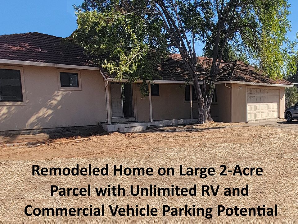 - Exterior features: Heating system: Forced Air, Over 2.000 square feet of gravel area for recreational and/or commercial vehicle parking., The home is situated on a 2-acre parcel with 1/2 acre of space allocated for tenant., Water not included in rent