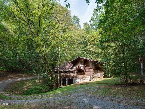 One of a Kind !!! Amazing custom built 1987 square log home sits on 4.5 acres with a beautiful creek , wooded surroundings, Unique design, super private location yet convenient to everything South Knoxville has to offer There is workshop in basement , central heat/air, quaint covered front porch overlooks the twin creek, hardwood floors, minor updates and some finish work still needed SOLD AS IS