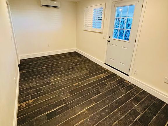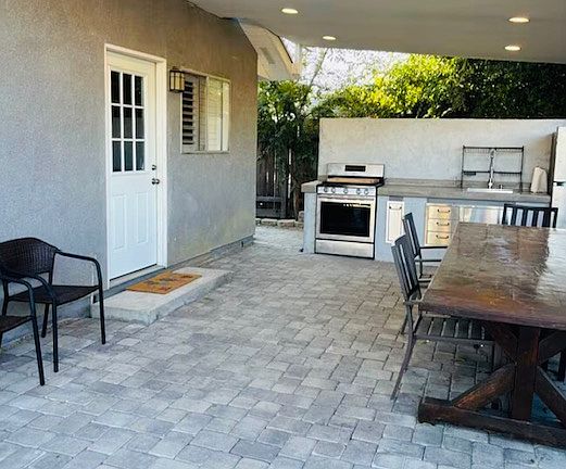 This is a single back house unit that is for rent, located behind a single family house which is occupied by the owner. This back unit has its own private entrance to the unit through a side door. Rents with window shutters, recessed lighting, stand shower, mini split AC/heat unit, shared washer/dryer, gas range (stove/oven), & a refrigerator. Kitchenette is located right outside of the unit on a covered patio. Water, power, gas, & trash are paid for by the owner.