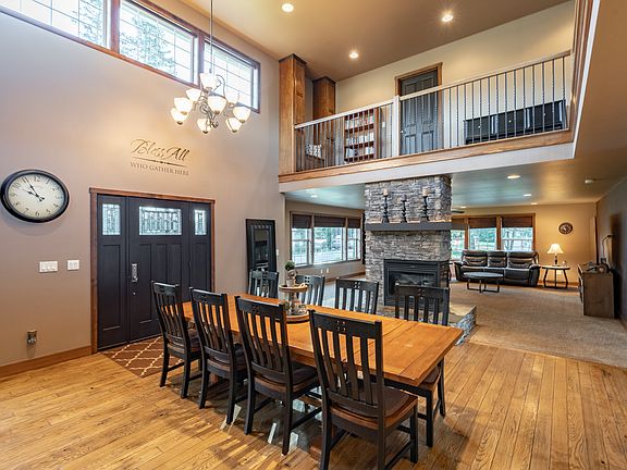 A beautiful & large custom 4 bed 3.5 bath home w/ open layout, 360 fireplace & shop! From the entry you are greeted with a grand entry & dining area that flows into the kitchen & living area. A private master bedroom located on the main & paired w/ a 5 piece bath & walk-in shower. The 2nd floor has dual Jack & Jill bedroom suites & large media/bonus-room w/ wet-bar. Other extras include private office, enormous basement, romantic outdoor covered patio & park like yard! This home is a must see!