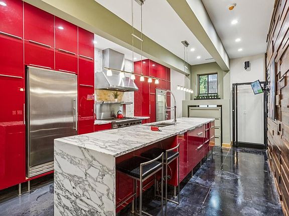 Modern designer touchesStylish lightingSoaring ceilingsDramatic marble waterfall islandCustom built-insVersatile loftFloor-to-ceiling windows
